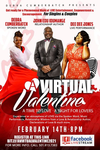 Purchase your tickets for only $14.00 to attend 'A ViRTUAL VALENTiNE 2021' LIVESTREAM event. You will be happy that you did. You are in for a special treat. CLICK the BUTTON BELOW to register.